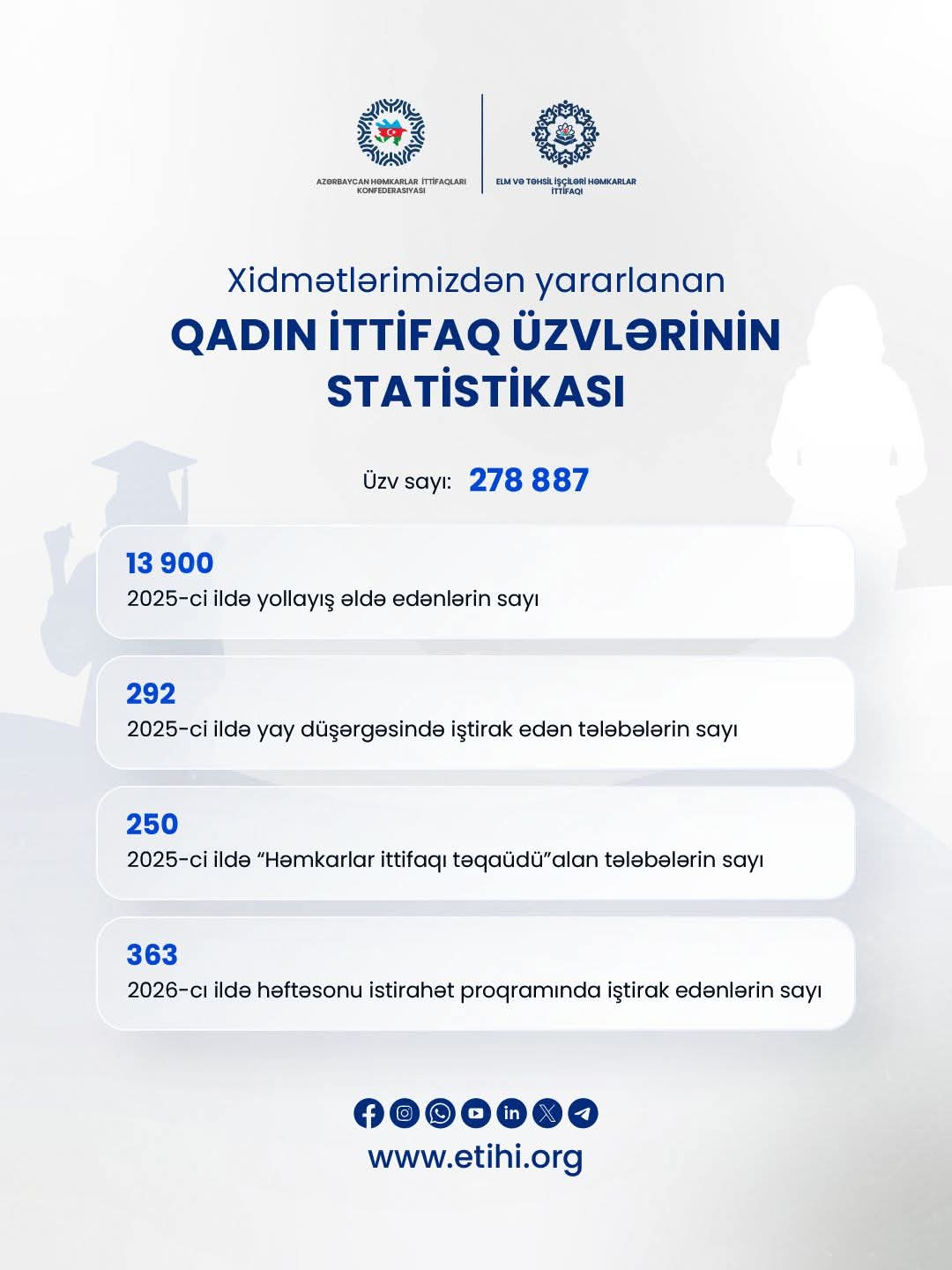 Komitə sədri paylaşımında qeyd edib ki, ETİHİ-nin 278 min 887 qadın üzvü var: "Bu göstərici təhsil sahəsində qadınların güclü mövqeyə malik olduğunu aydın şəkildə nümayiş etdirir.