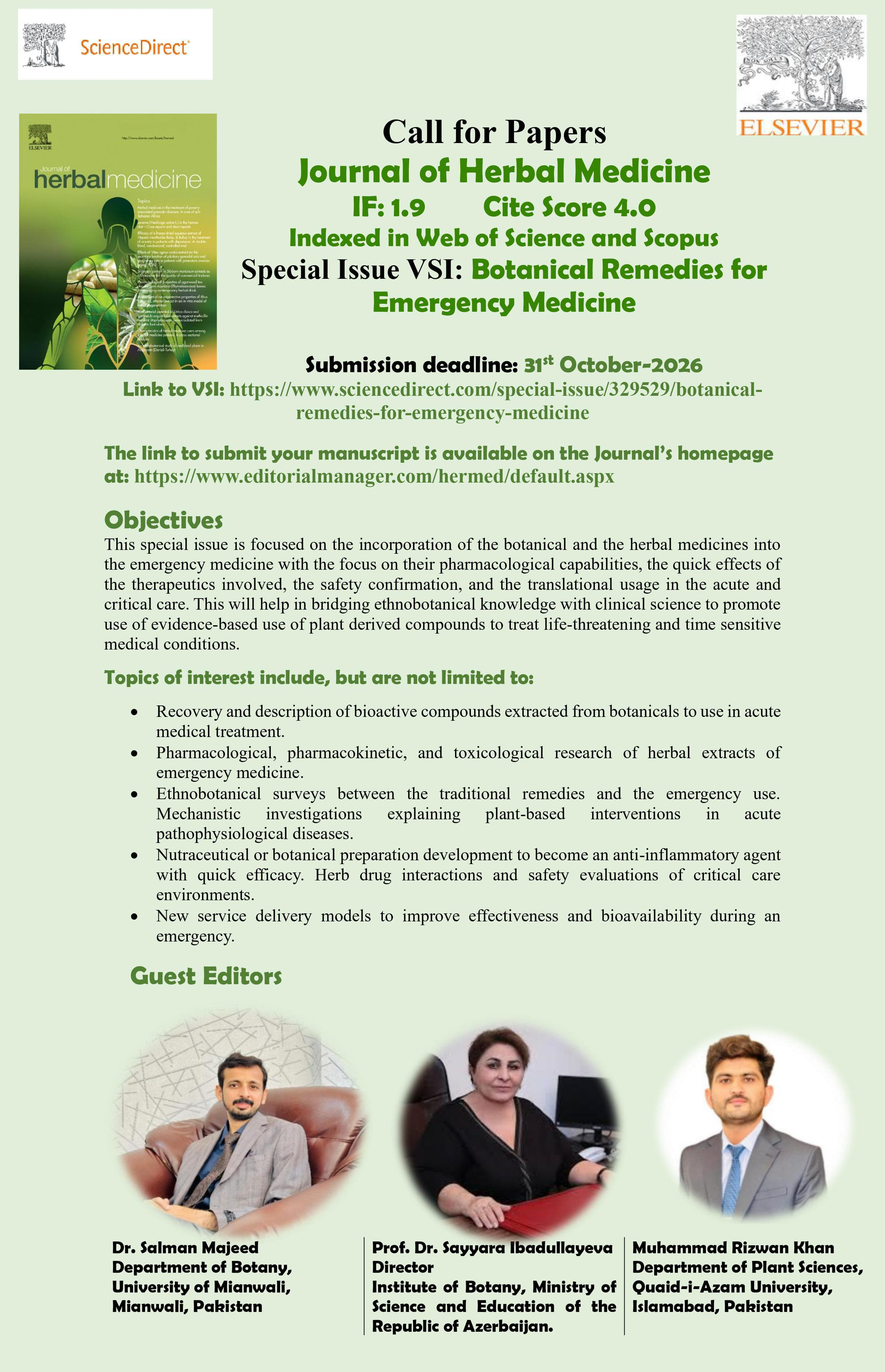 Elm və Təhsil Nazirliyi yanında Botanika İnstitutunun PHŞ-in direktoru, professor Səyyarə İbadullayeva "Web of Science" və "Scopus" elmi bazalarında indekslənən "Journal of Herbal Medicine" nəşrinin xüsusi buraxılışına xarici redaktor (VSI – Guest Editor) təyin olunub.