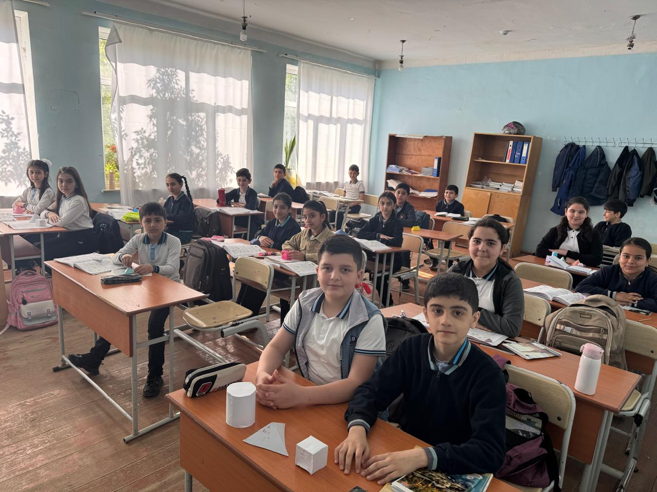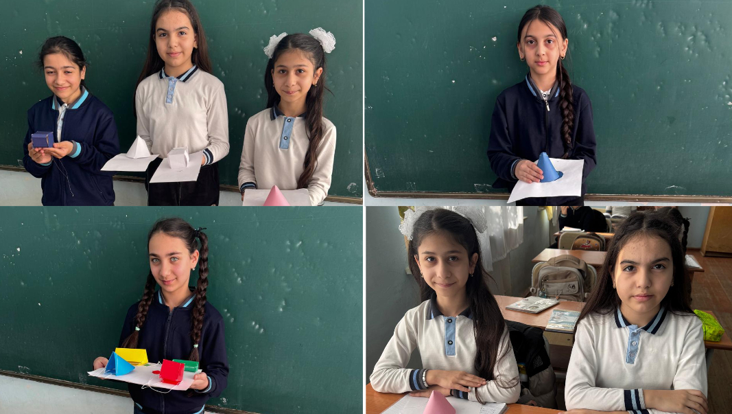 Dərs zamanı sinif otağı adi tədris mühitindən fərqli olaraq daha canlı, yaradıcı və maraqlı bir atmosferə bürünmüşdü. Şagirdlər bu dəfə fəza fiqurlarını yalnız dərslikdəki şəkillər üzərindən öyrənməyib, öz əlləri ilə hazırladıqları maketlər vasitəsilə onların təpə, til və üzlərini vizual olaraq dərk etməyə çalışıblar. Bu yanaşma şagirdlərin həm məkan təfəkkürünün, həm də praktik bacarıqlarının inkişafına mühüm töhfə verir.