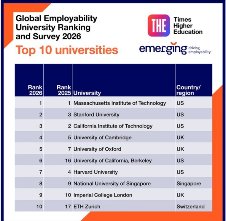 Böyük Britaniyanın aparıcı reytinq təşkilatı olan “Times Higher Education” (THE) 2026-cı il üzrə dünyanın ən uğurlu məzun hazırlayan ən yaxşı universitetlərinin məşğulluq reytinqini (“Times Higher Education Emerging Group”) açıqlayıb.