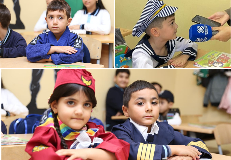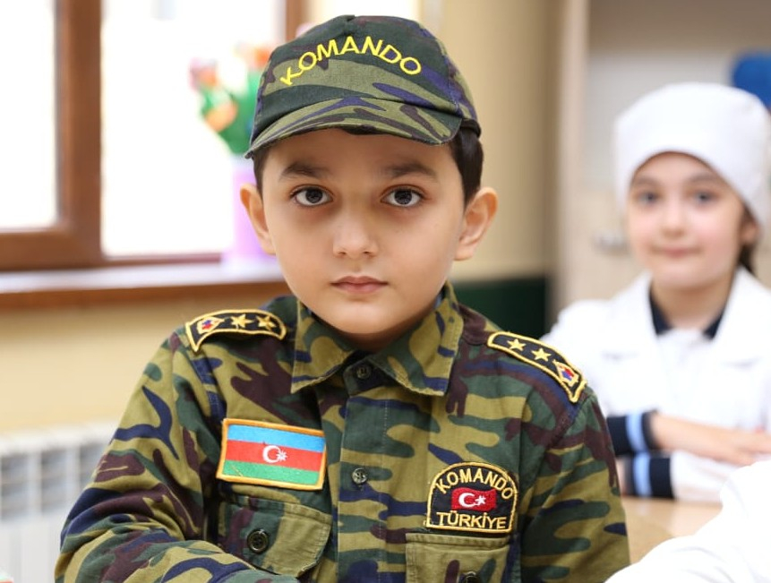 Ülviyyə müəllimin fikirlərini öyrəndikdən sonra balaca “peşə sahibləri” ilə söhbət edirik. Birinci sinif şagirdlərinin peşələr haqqında nə bildiklərini, düşündüklərini öyrənmək maraq doğurur. İlk yaxınlaşdığım şagird hərbi geyimdə əyləşən oğlandır. Onun adı Azad Əhmədzadədir və böyüyəndə hərbçi olacağını, Vətənimizi qoruyacağını deyir. Bildirir ki, dərslərini yaxşı oxumaqla yanaşı, futbol məşqlərinə gedir, idmanla məşğul olur: “Hərbçi həm bilikli, həm də güclü olmalıdır”, - deyir Azad.