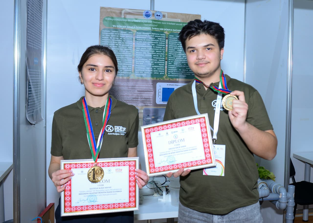 Xəzər Universiteti nəzdində Bakı Dünya məktəbinin IX sinif şagirdi Nuray Quliyeva və XI sinif şagirdi Nəcəf Orucov ekologiya sahəsində təqdim etdikləri innovasiya ilə qızıl medalın (I yer) sahibi olublar.