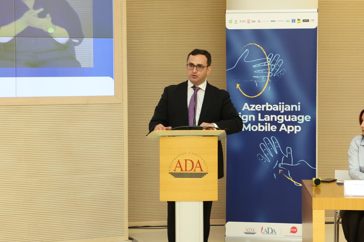 Oktyabrın 8-də ADA Universitetində Azərbaycan jest (işarət) dilinin öyrənilməsi üçün nəzərdə tutulmuş yeni mobil tətbiqin təqdimatı keçirilib. “Azərbaycan jest dili tətbiqi” (“JestPlus”) layihəsi ADA Universiteti və ADA Universiteti Fondu tərəfindən həyata keçirilib. bp və tərəfdaşlarının” “Nar” şirkətinin maliyyə dəstəyi ilə reallaşan bu təşəbbüs inklüzivliyin təşviqini məqsəd qoyur.