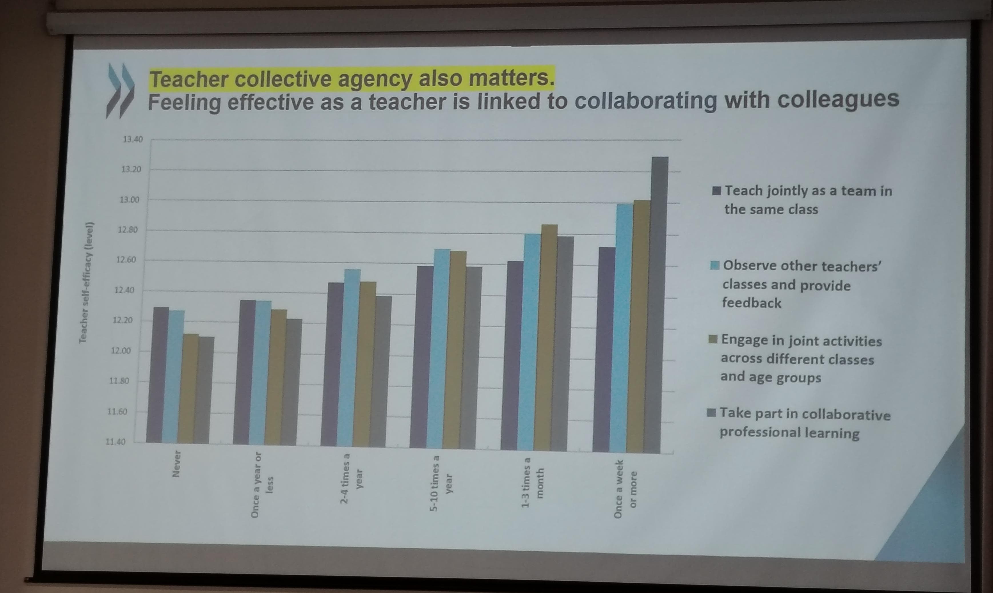 Şleyxer OECD-nin TALIS (Teaching and Learning International Survey) məlumatlarına istinad edərək bildirib ki, müəllimlərin peşəkar inkişafında ortaq dərs demək, digər müəllimlərin dərslərini müşahidə edib rəy vermək, müxtəlif yaş qruplarında birgə fəaliyyətlər təşkil etmək və birgə peşəkar öyrənmə icmalarında iştirak etmək kimi təcrübələr mühüm rol oynayır.