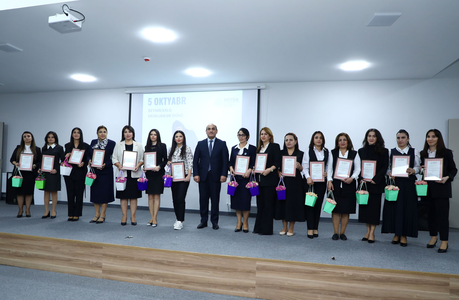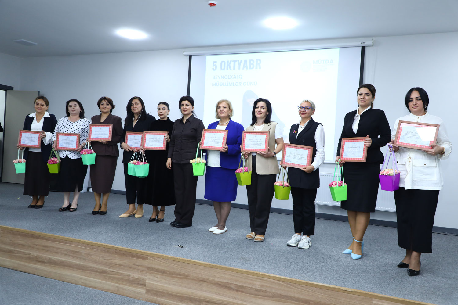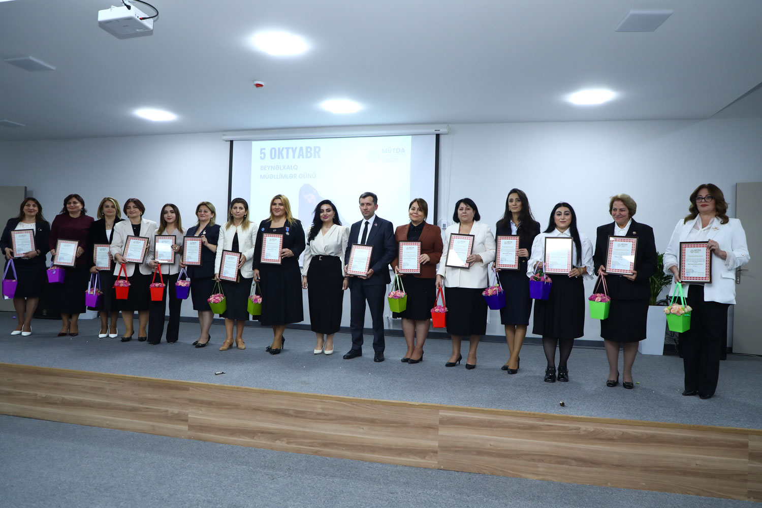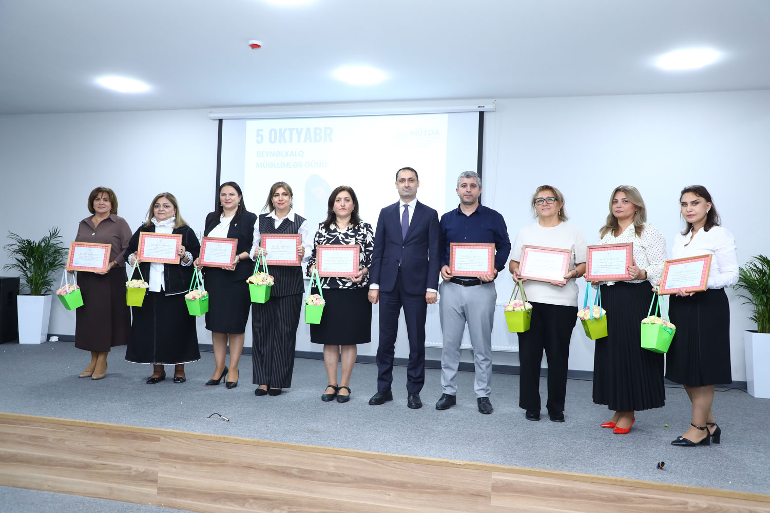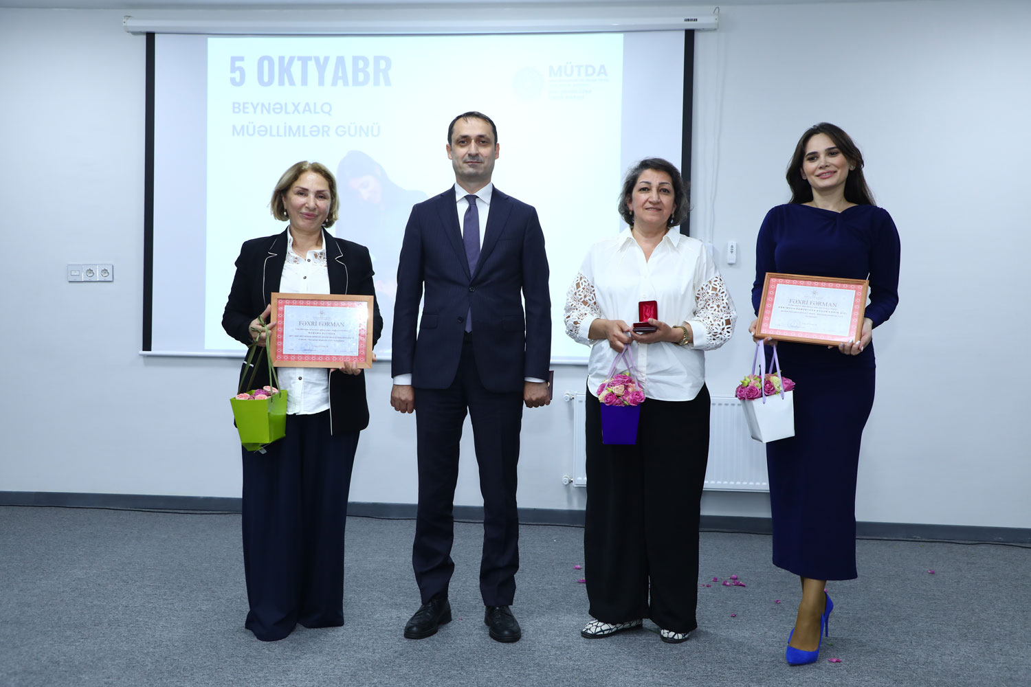 MÜTDA-nın Uşaq inkişafı və rifahı şöbəsinin müdiri İlahə Rəsulova, Təhsil İnstitutunun direktor müavini Fuad Qarayev müəllim nüfuzunun artırılması, nüfuzlu təhsilverənlərin formalaşdırılması istiqamətində dövlətin təhsil siyasətinə uyğun olaraq məqsədyönlü tədbirlərin həyata keçirildiyini diqqətə çatdırıb, ölkəmizin intellektual potensialının gücləndirilməsi yolunda yorulmadan fəaliyyət göstərən təhsilverənlərə gələcək işlərində uğurlar arzulayıblar.
