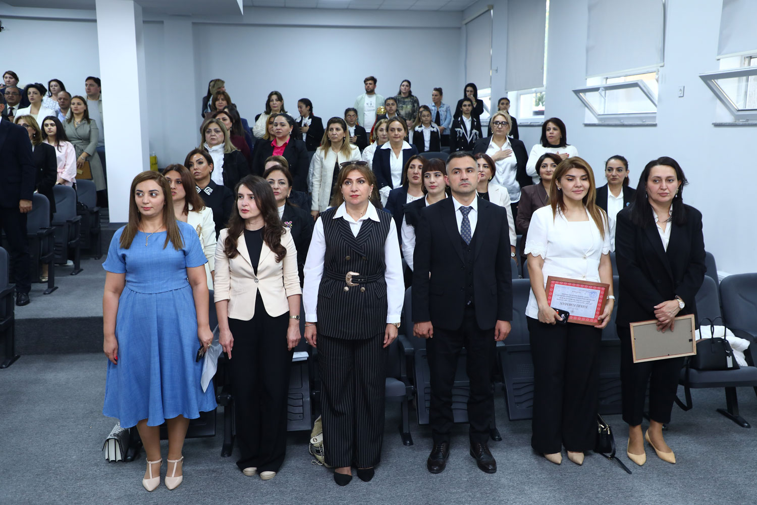 Azərbaycan Respublikasının Dövlət Himninin səsləndirilməsi ilə başlayan tədbirdə Vətən şəhidlərinin əziz xatirəsi bir dəqiqəlik sükutla yad edilib.