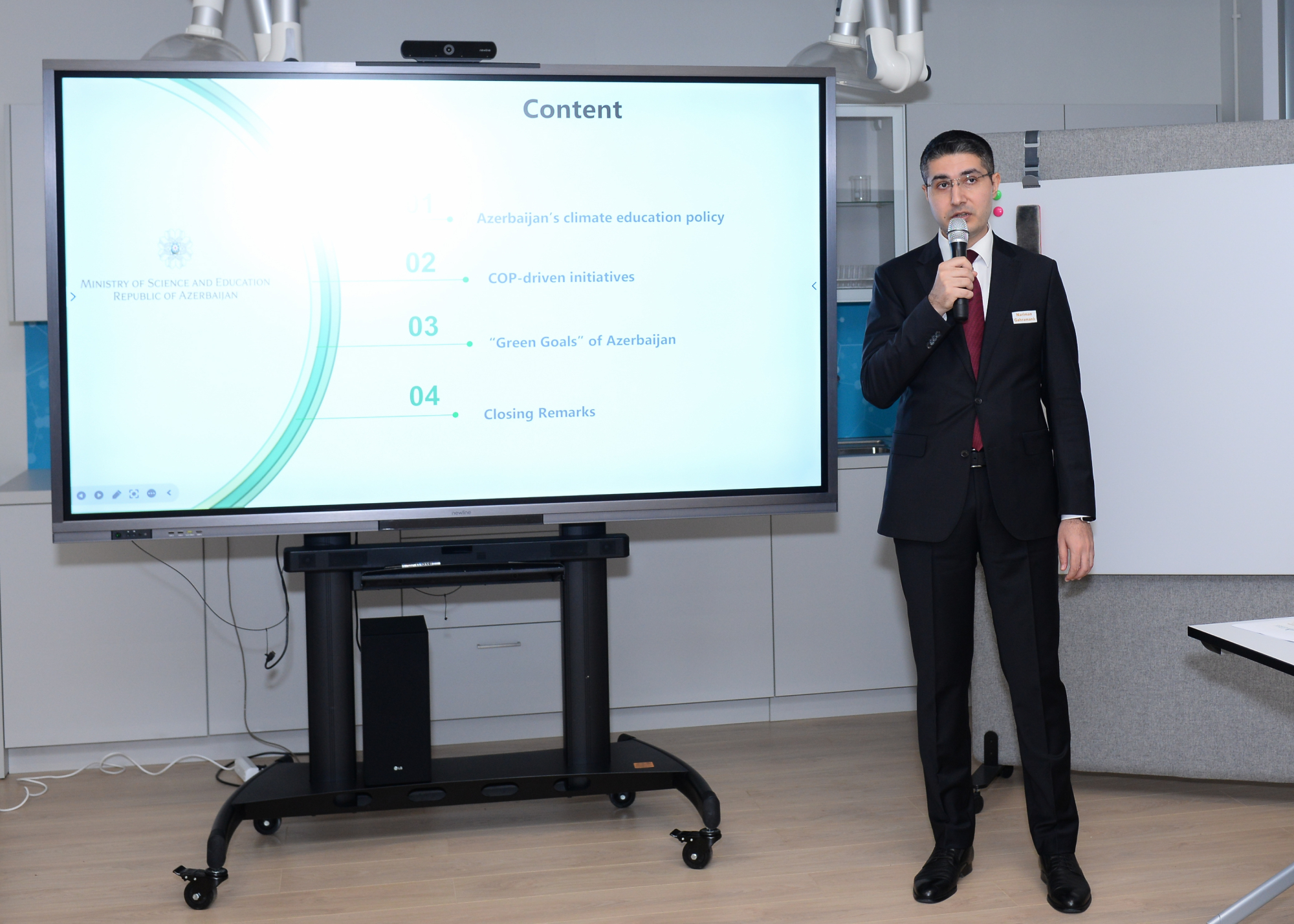 Açılışda həmçinin İSESKO və Kembric Universitetinin nümayəndələri tərəfindən “Yaşıl təhsil çərçivəsi və onun regional əhəmiyyəti” mövzusunda təqdimat olub.