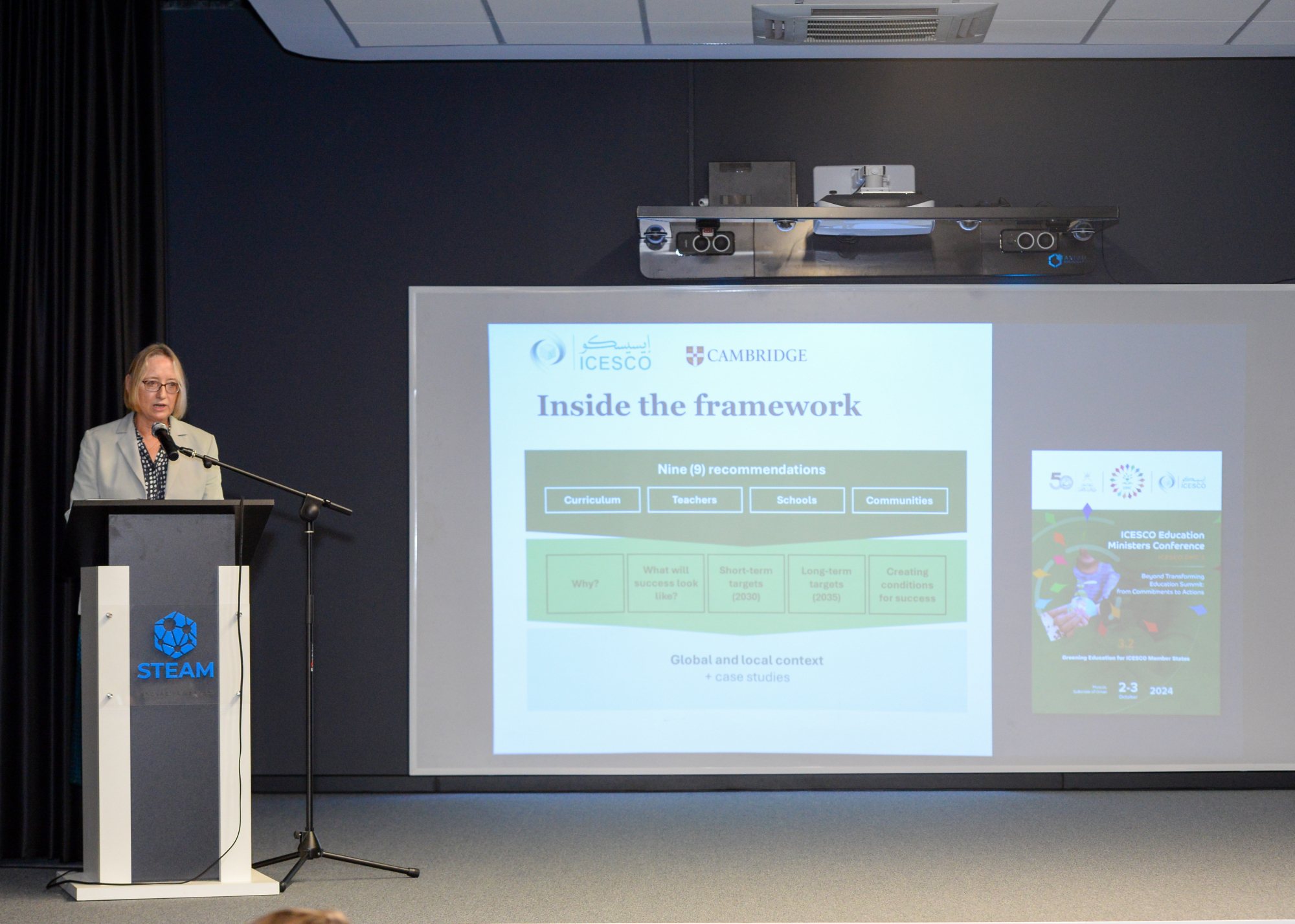 İSESKO-nun Təhsil sektorunun rəhbəri Heddi Jatu Sey çıxışında bildirib ki, bu dövrdə təhsil artıq sadəcə öyrətmək vasitəsi deyil, həm də cəmiyyətlərin və sistemlərin transformasiyası üçün əsas gücə çevrilməlidir. Heddi Jatu Sey qeyd edib ki, İSESKO Kembric Universiteti ilə əməkdaşlıq çərçivəsində “Yaşıl təhsil siyasəti” sənədini hazırlayıb və bu sənəd üzv dövlətlərə iqlim dəyişikliyi ilə mübarizədə dəstək məqsədi daşıyır. O bildirib ki, İSESKO-nun təhsil sahəsindəki bölmələri üzv dövlətlərin iqlim fəaliyyətini təhsil proqramlarına daxil etməsi üçün böyük səylə çalışır.