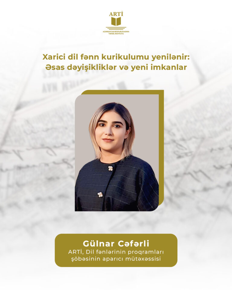 Təhsil İnstitutunun Dil fənlərinin proqramları şöbəsinin aparıcı mütəxəssisi Gülnar Cəfərlinin “Xarici dil fənn kurikulumu yenilənir: Əsas dəyişikliklər və yeni imkanlar” adlı məqaləsini təqdim edirik.